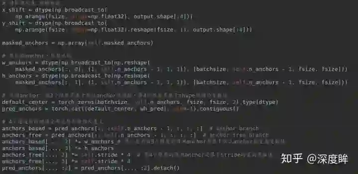 ,s是每个特征图的stride,w就是原始gt bbox宽,dw才是shape分支的预测值。上述的squares_list存储的就是每层特征图的每个位置的基数,用于还原shape预测值到真实比例,由于anchor=1,且对于任意层而言是固定的,所以在代码实现上作者也用了anchor_generate代码来实现