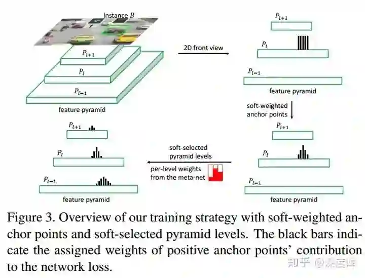 看到上图,就可以知道本文所有的操作了。对于特定层内的正负样本定义,原先是hard,现在通过引入权重变成了soft;对于层级间的正负样本定义,原先只会分配到特定层,其余层都0,现在引入了soft操作,权重是自己学到的。