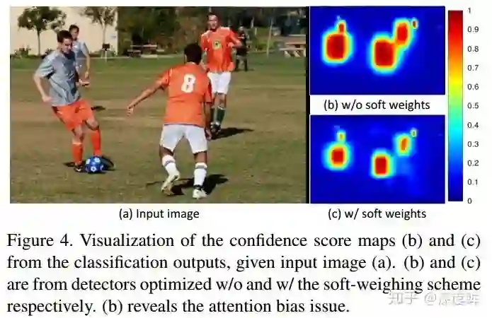 看过前面centernet 平衡分类loss分析的人可能有疑问:在centernet里面,其对focal loss的权重设置是在半径范围内,除中心点外,离中心点越近,权重最小,往外依次增加;但是这里的设计是正好相反的,其是离中心点越近,权重越大,往外依次减少。看起来是矛盾的?其实不是,千万不要忘记了label设计规则,centernet的分类label设置是除了中心点是1外,其余全部为0,而本文的label设置是不仅仅中心点是1,shrink附近区域的点也是1,其余全部是0,也就是说模糊区域中,centernet出发点认为是背景样本,而本文出发点认为是前景样本,所以其权重设置规则是正好相反的。