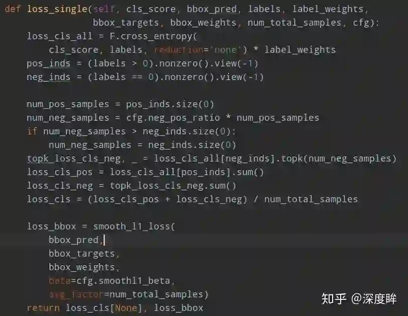 核心就是按照分类loss进行topk,得到3倍的负样本进行反向传播。