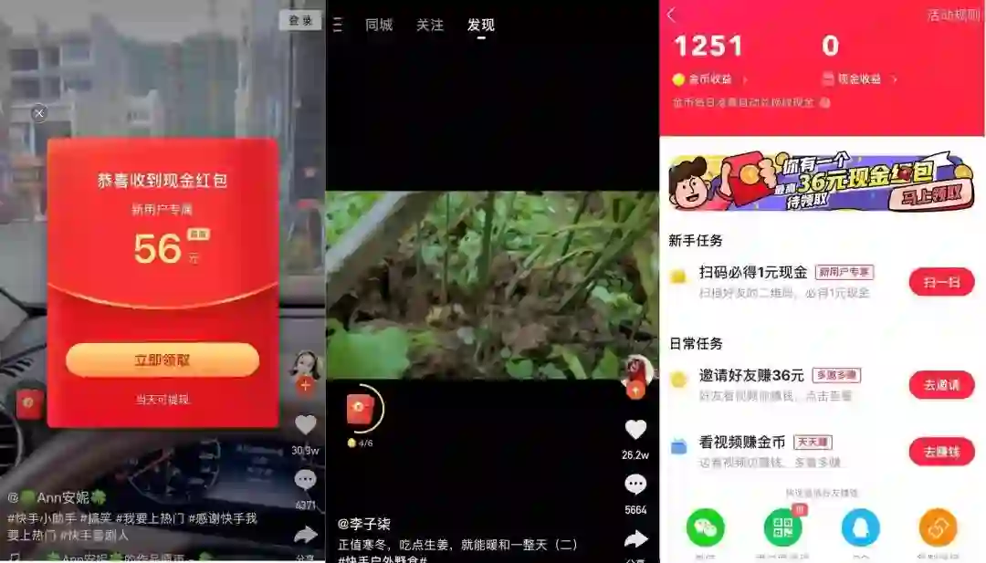 在各种极速版应用中,完成任务获得现金激励几乎成了标配。今日头条极速版的slogan成了“看资讯领现金红包”,抖音极速版和快手极速版看短视频可以领金币提现。和早期的趣头条以及目前市面上的一些内容类产品相比,这些极速版产品奖励力度有限,而胜在与主端APP打通,内容质量更高,社交等核心功能更为完善。
