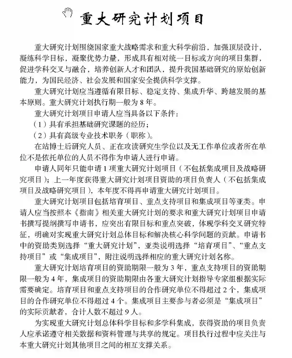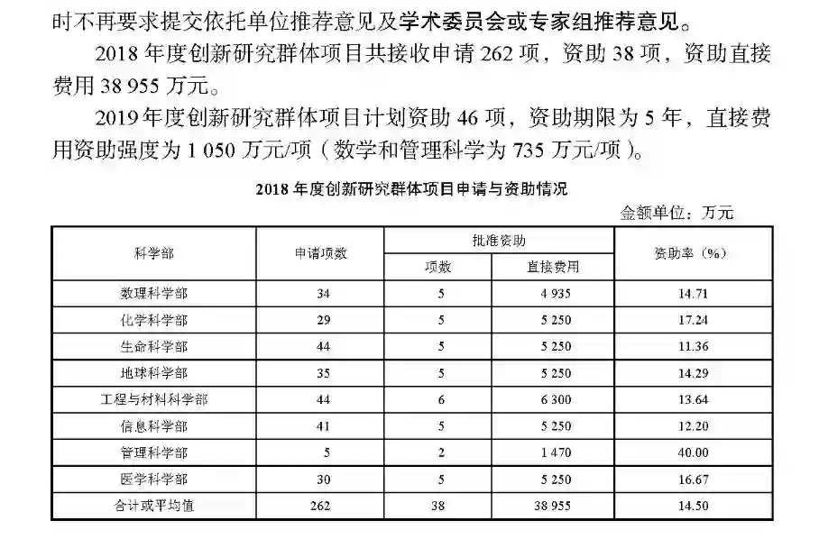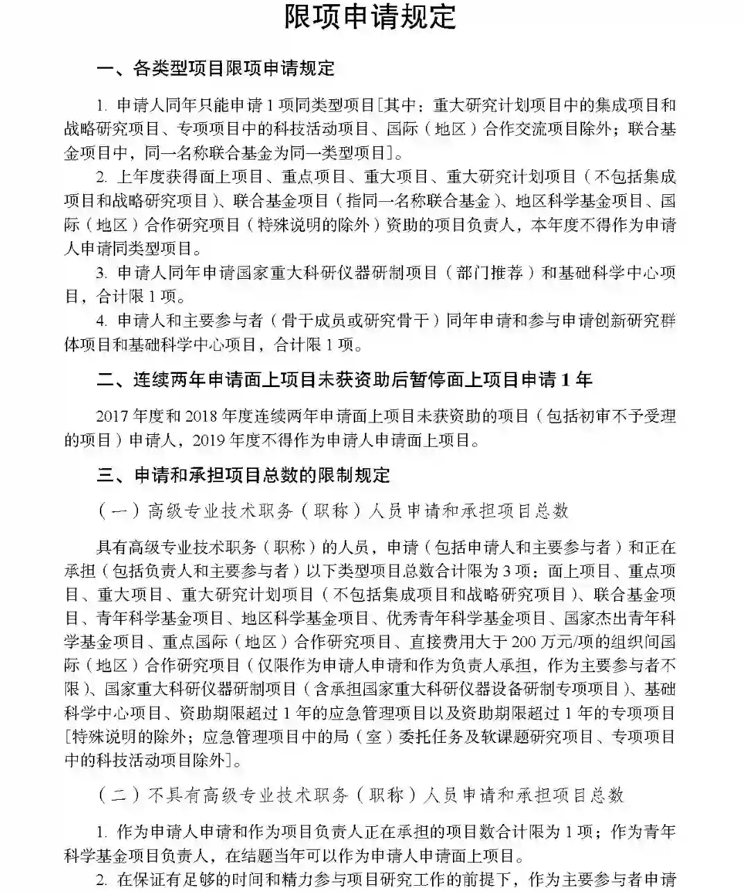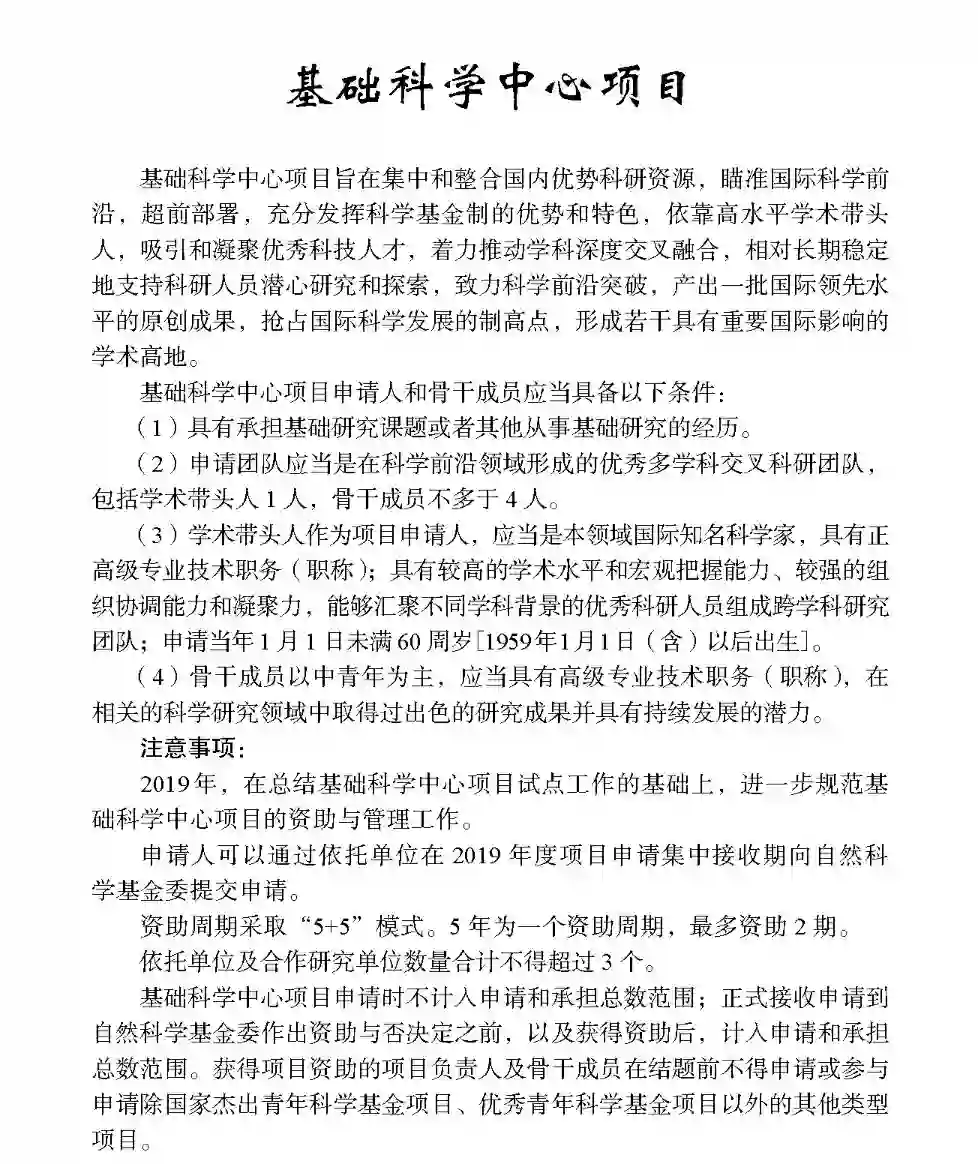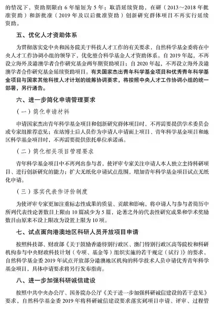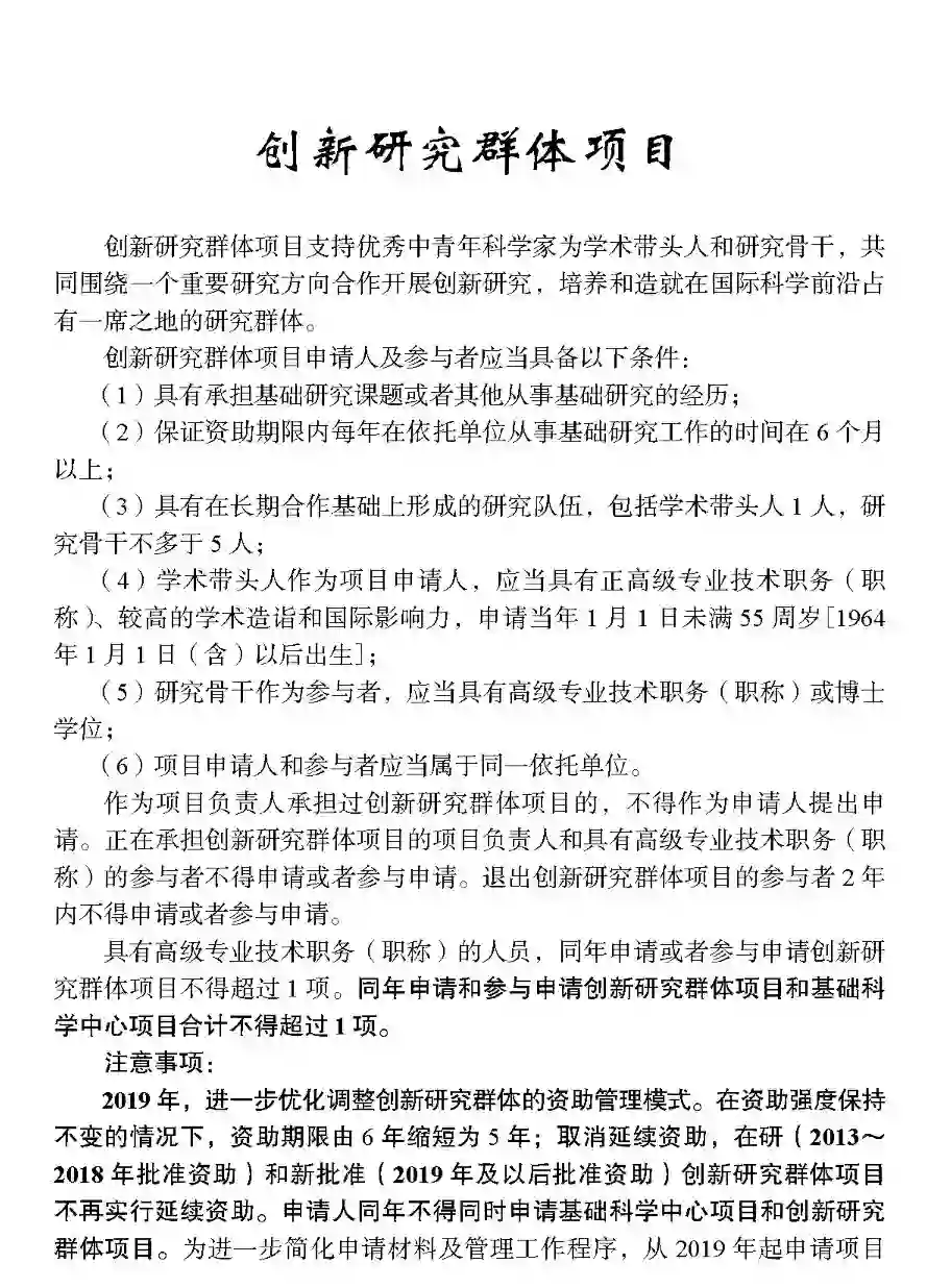 3、取消延续资助:在研(2013-2018年批准资助)和新批准(2019年及以后批准资助)创新研究群体项目不再实行延续资助。