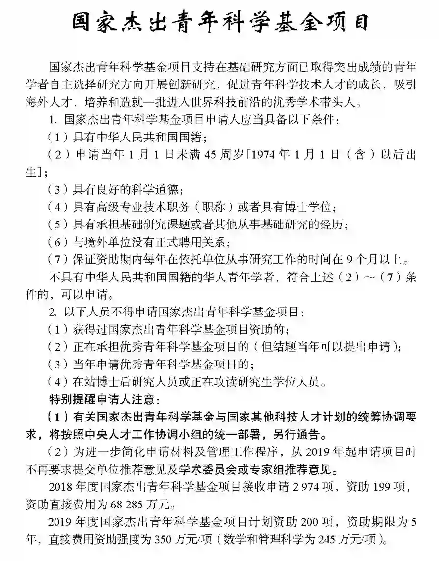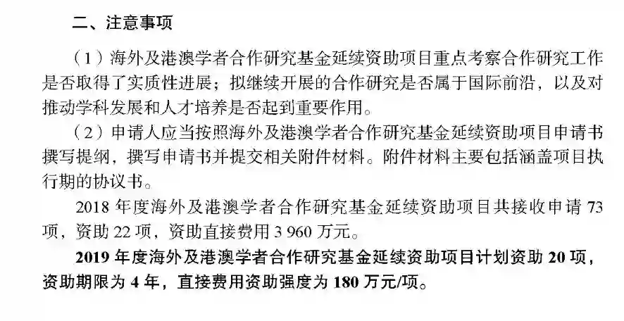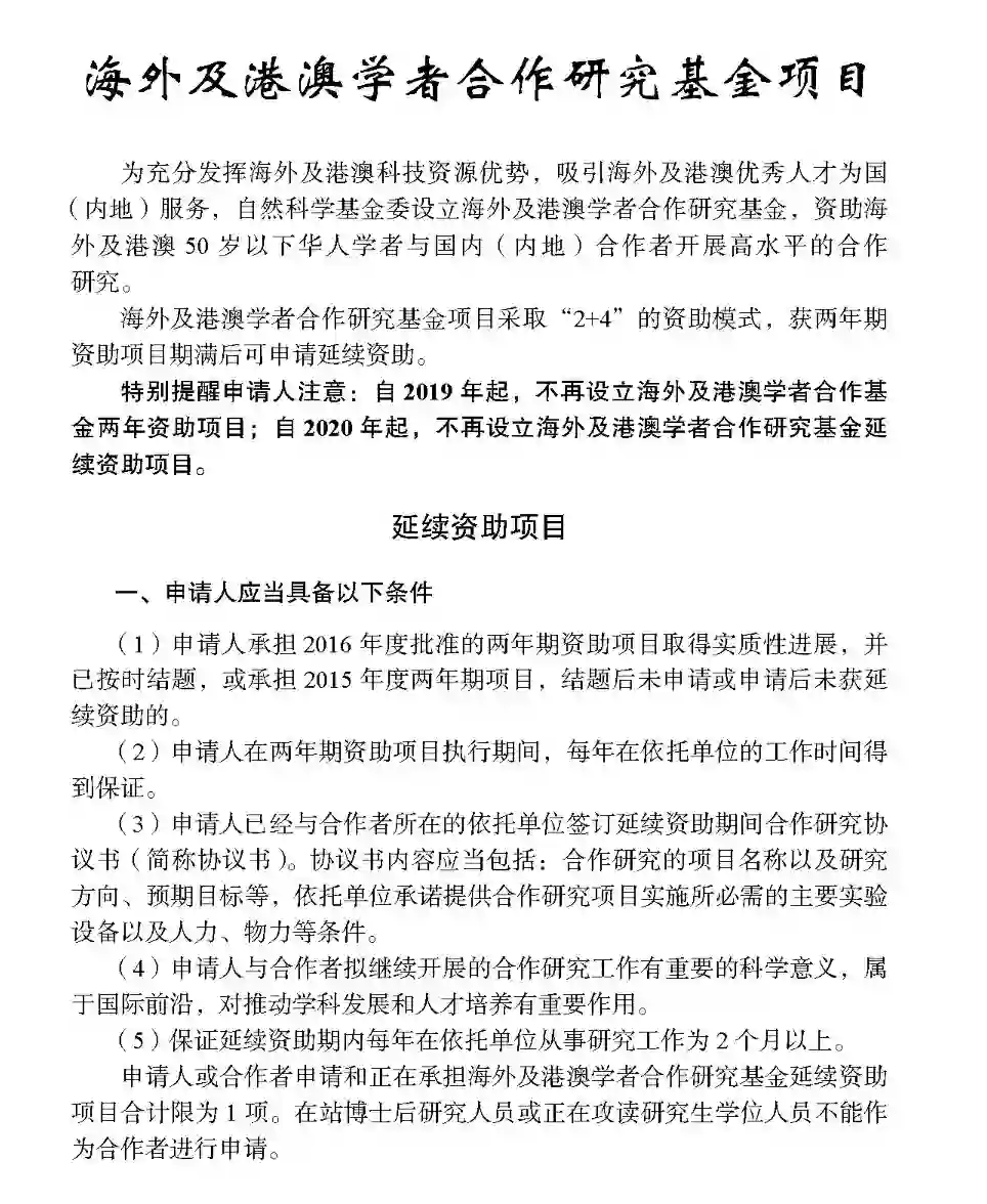 1、自2019年起,不再设立海外及港澳学者合作研究基金两年期资助项目;