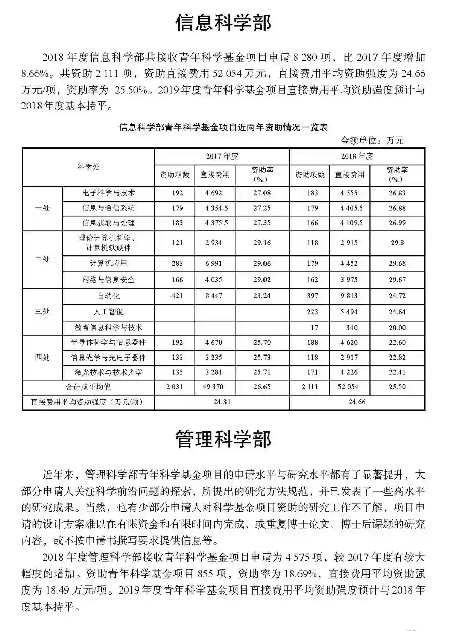 2、增加资助规模:由之前的每年38项增加到46项。每个科学部在原有指标基础上各增加1项。