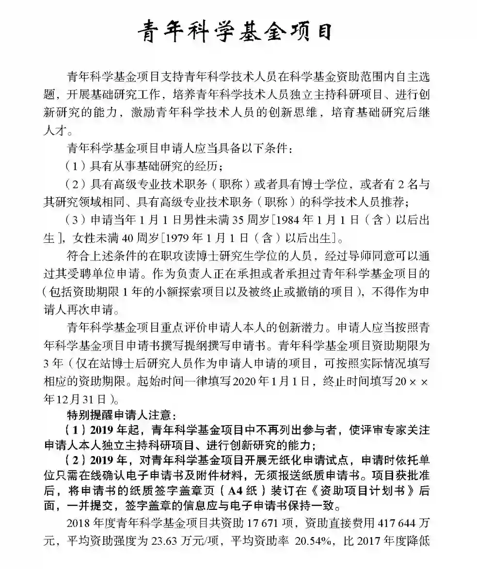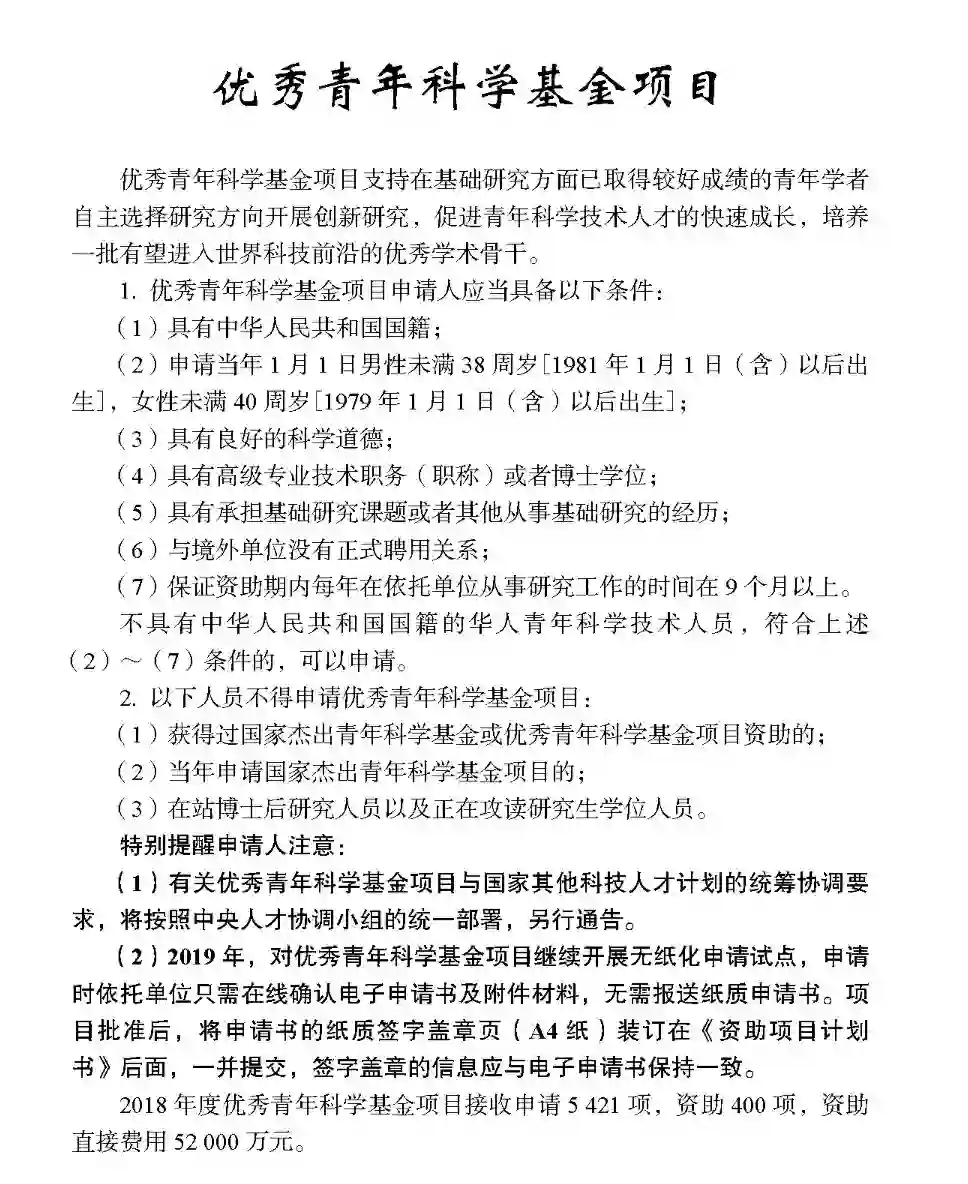 4、扩大无纸化申请试点范围,除重点项目、优秀青年科学基金项目外,增加青年科学基金项目试点无纸化申请。