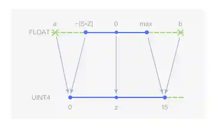 其中,Q 是量化方法,r 是真实获取的输入 FLOAT 值,S 是 FLOAT 类型的缩放因子,Z 是 INT 类型“零点”。