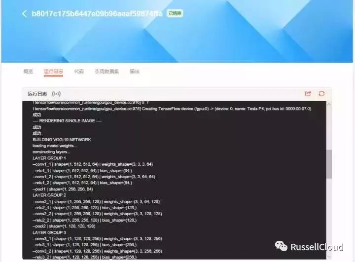 其实使用这个VGG19层的网络做深度学习,运行时间是比较长的,但如果使用RussellCloud的GPU复现,一切都会变的快速!偷偷告诉你,RussellCloud使用的可是NVIDIA的Tesla系列GPU哦。