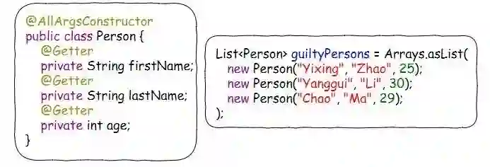 由于静态函数其实只是对List进行了一通操作,这里我们可以甩掉静态函数,直接使用stream()特性来完成。stream()的几个方法都是接受Predicate<T>,Consumer<T>等参数的(java.util.stream (Java Platform SE 8 ))。你理解了上面的内容,stream()这里就非常好理解了,并不需要多做解释。