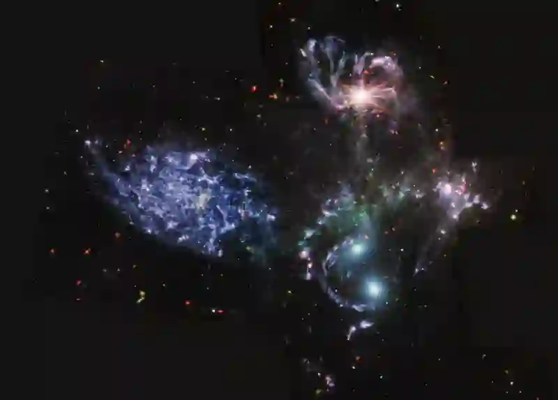 韦伯拍下的“史蒂芬五重星系”(Stephan's Quintet)