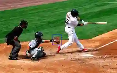 以视觉领域为例,尽管卷积神经网络等模型取得了极大的成功,但是仍不具备复杂推理的能力,比如图 7‑4中,要判断蓝色方框的目标是什么。人类在看到这副图像的时候,根据图中的棒球棒、人物的姿态,首先会得出这张图在描述打棒球,然后以此为依据,对于蓝色的目标区域,根据这个人的姿势和手部姿态判断他是处于接棒球的状态,因此可以推断蓝色区域为棒球手套。而使用基于卷积网络的方法进行识别,除了在更大的感知野内获得的层次化特征之外,无法通过图像的语义信息来准确推理出蓝色区域的目标。
