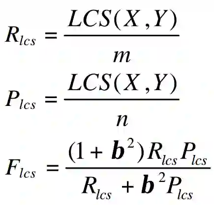 X表示参考摘要,Y表示候选摘要,m、n分别表示二者的长度,LCS(X,Y)表示最长公共子序列的长度。