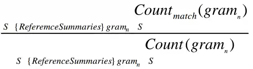 因为分母是参考摘要中N-grams出现的总数,那么评估的是候选摘要对N-grams是否覆盖得够全面。