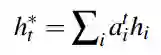 接着以注意力分布为权重,对Encoder的隐状态序列进行加权求和,得到上下文向量: