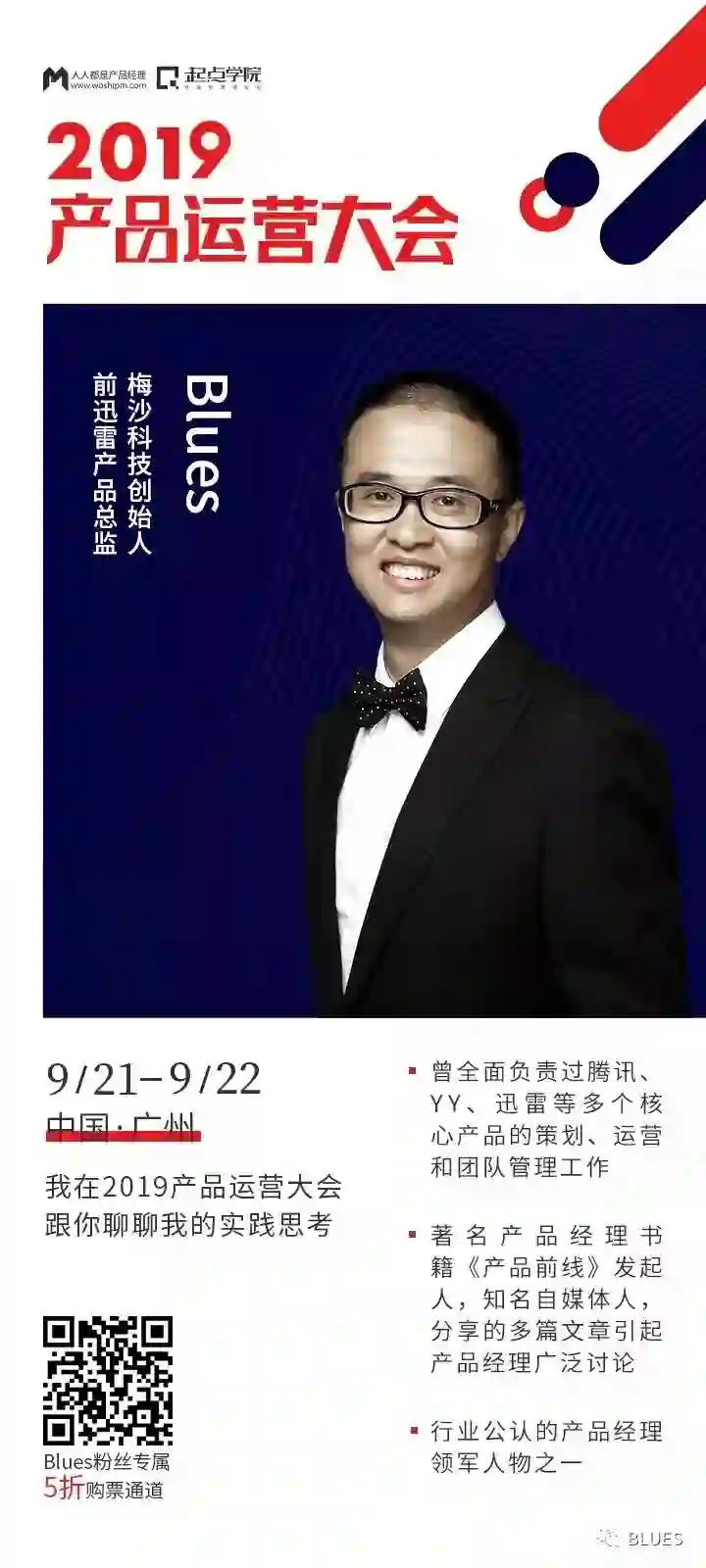 写在前面:本周末,BLUES将会参加本周末在广州的一个大会分享发言,人人都是产品经理和腾讯大讲堂联合主办的「2019产品运营大会」,为感谢大家对BLUES公众号的关注,这篇文章后面送出10张大会门票,