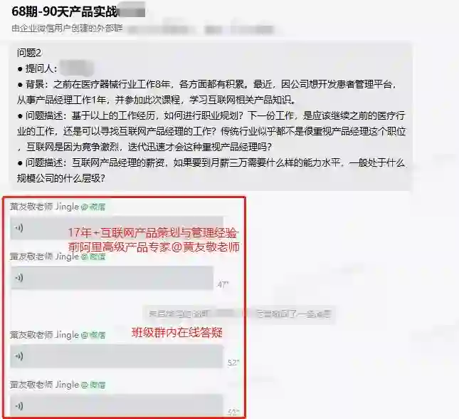 在学完产品的基础知识之后,我继续在班级群请教授课的老师们,老师们的方法论、过往经验都给了我很大的启发!