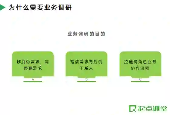 这个部分,老师会针对业务调研的目的进行展开说明,帮助大家理解业务调研的价值。