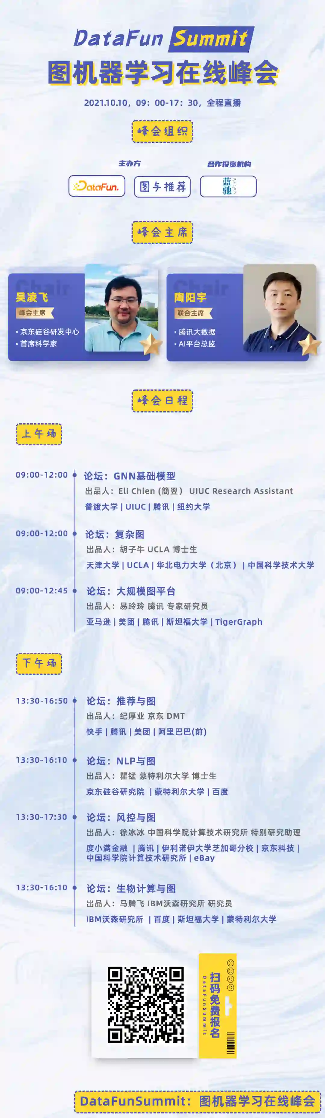 本次峰会我们将涵盖图深度学习的广泛主题,即图神经网络,内容包括从方法论到应用,从基础到技术的新前沿。当然我们也关注到没法全面涵盖图神经网络这个快速增长的领域,及时应对新技术和应用的不断涌现。因此,我们组织这个峰会的目的是希望提供一个高水平的技术交流平台,让来自世界各地的高校的领域专家和各个头部公司的算法专家,来畅谈图神经网络在算法设计,实用的业务应用实践的经验和教训;同时让众多的从业者有机会学习,探讨,从而推动图神经网络在各个领域普遍推广,发挥更实际的产业价值。