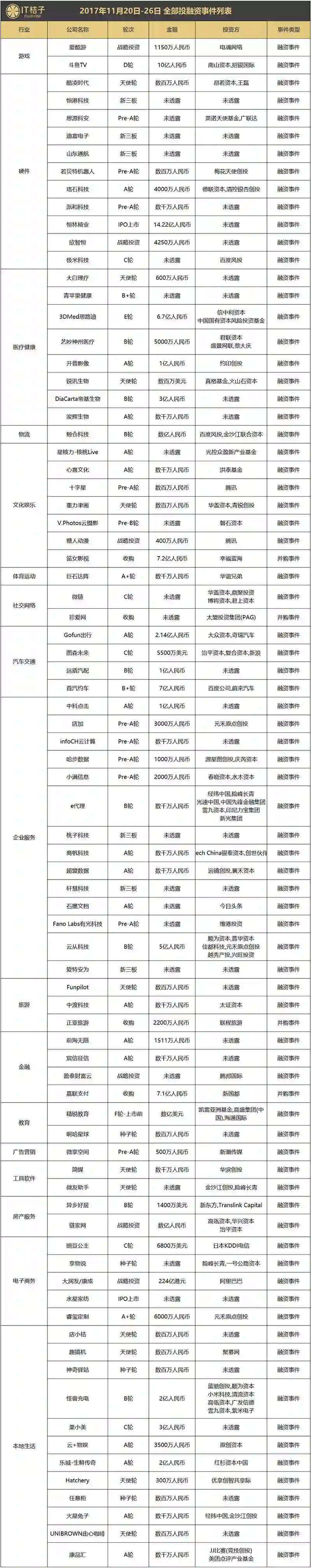 上周全部融资事件列表如下:(点击图片可放大查看)