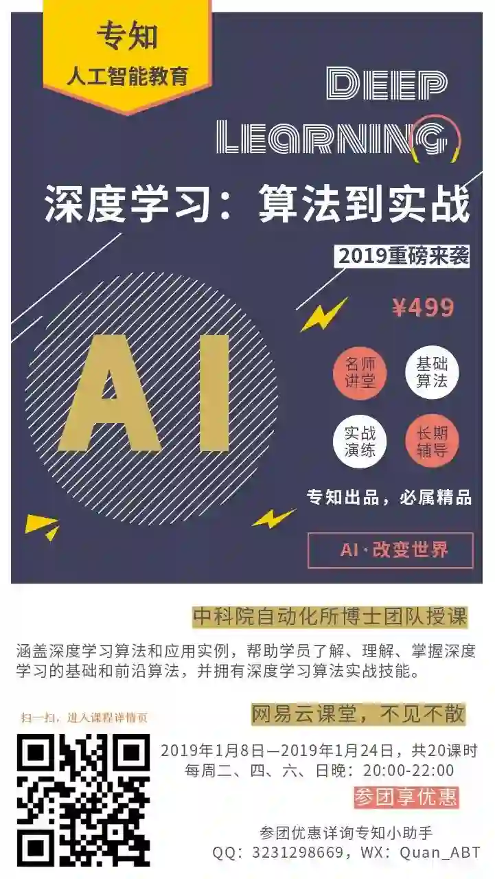请加专知小助手微信(扫一扫如下二维码添加),咨询《深度学习:算法到实战》参团限时优惠报名~