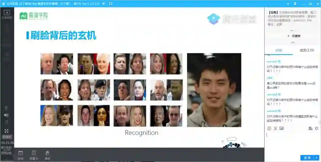 第三场直播中,范浩强老师则为我们耐心地讲解了刷脸技术背后的玄机,首先,第一步是人脸检测,就是在镜头中确定位置,找到人脸“在哪里”;第二步为关键点检测,在已经确定的人脸位置处,找准眉眼、耳鼻等脸部轮廓的关键点,为进一步的分析做准备; 第三步,则是基于大规模数据的人脸识别,弄清“这是谁。