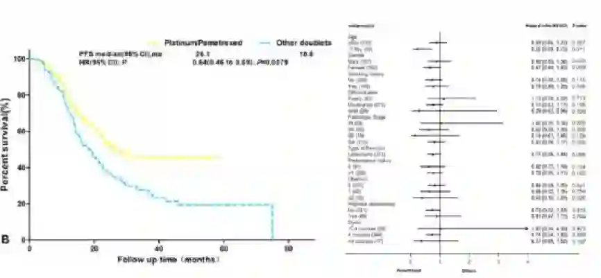 主持人:培美曲塞在晚期非鳞癌的治疗当中,以高效低毒得到了大家认可,辅助治疗中其实也有数据表明其有效性和低毒性,譬如TREAT前瞻性研究中入组1B-IIIA 期(T3N1M0)肺癌患者,按照1:1随机分入长春瑞滨+顺铂或是培美曲塞+顺铂进行治疗,评价两个方案在术后辅助治疗中的可行性,结果显示培美曲塞+顺铂的可行性是95%,显著高于长春瑞滨+顺铂75%的可行性,剂量限制性毒性导致停药也是培美曲塞+顺铂的发生率明显低于长春瑞滨+顺铂治疗组。此外北京协和医院今年5月份在《Scientific Report》杂志上发表了一项回顾性研究,纳入了300余例术后辅助治疗的肺腺癌患者,比较培美曲塞/铂类方案和其它含铂双药方案辅助化疗时的DFS,结果显示培美曲塞联合铂类治疗患者的DFS达到了26个月,而其它含铂双药方案只有18个月,达到了非常明显的统计学差异,而且在毒性反应方面,培美曲塞治疗组显著低于其它含铂双药方案治疗组。从这两项研究数据上可以看出,培美曲塞联合铂类用于肺癌辅助化疗也是优选的治疗选择。