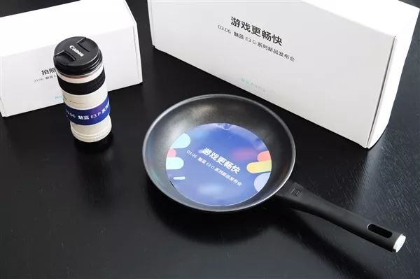 今天,又有疑似魅蓝新品的邀请函曝光。根据照片显示,魅蓝 E3 这次将分为两个系列,G (Game)系列和 P (Photo)系列,G 系列邀请函为一款德国双立人平底锅,P 系列邀请函为一款佳能单反镜头,两款产品分别主打游戏和拍照。