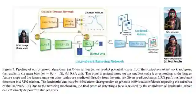 To further increase efficiency and accuracy, we (a): design a scale-forecast network to globally predict potential scales in the image since there is no need to compute maps on all levels of the pyramid. (b): propose a landmark retracing network (LRN) to retrace back locations of the regressed landmarks and generate a confidence score for each landmark; LRN can effectively alleviate false positives due to the accumulated error in RSA. The whole system could be trained end-to-end in a unified CNN framework. Experiments demonstrate that our proposed algorithm is superior against state-of-the-arts on face detection benchmarks and achieves comparable results for generic proposal generation. The source code of our system is available.