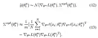 接着,作者发现公式7中定义的随机梯度下降优化过程实际上符合与高斯分布,即: