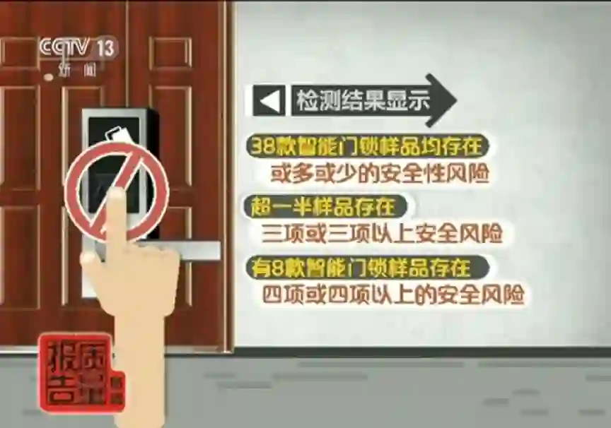 4.央视曝光38款智能门锁检测无一完全合格 14款活体指纹技术 用假指纹竟轻易解锁
