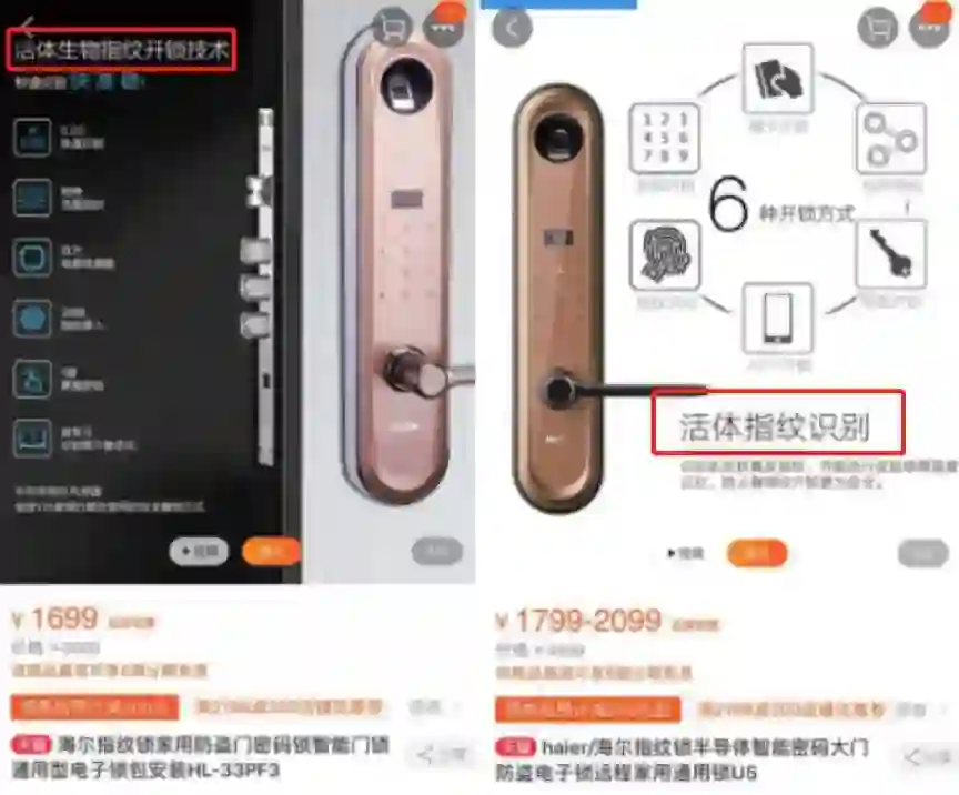 值得一提的是,那些虚假宣传自己具有“活体指纹检测”功能的产品,其中不乏是由鹿客、凯迪仕、TCL等“大牌”厂商制造的。