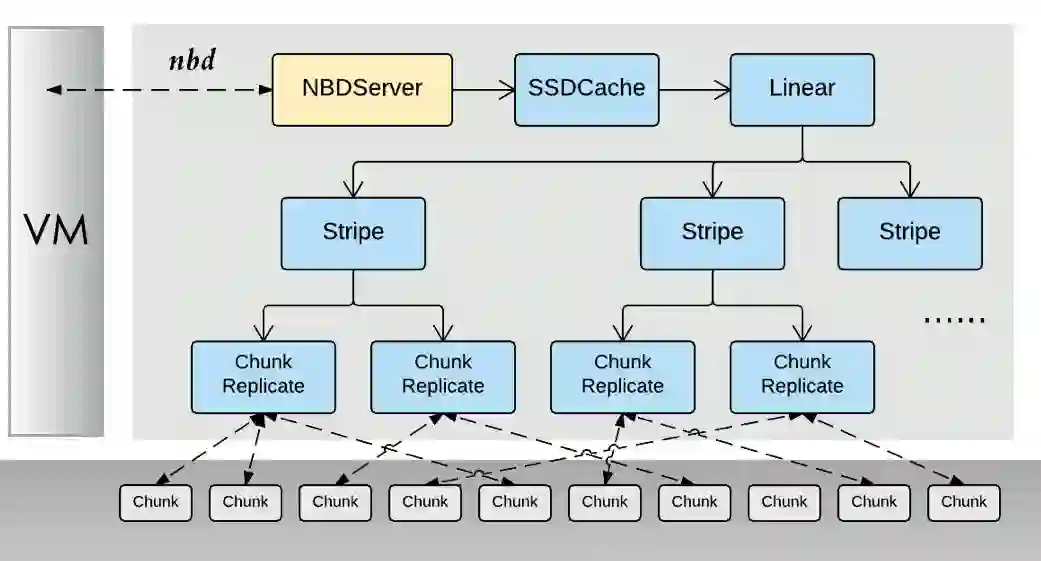 云硬盘对IaaS云计算平台有至关重要的作用,几乎已成为必备组件,如亚马逊的EBS(Elastic Block Store)、阿里云的盘古、OpenStack中的Cinder等。云硬盘可为云计算平台带来许多优良特性,如更高的数据可靠性和可用性、灵活的数据快照功能、更好的虚拟机动态迁移支持、更短的主机故障恢复时间等等。随着万兆以太网逐渐普及,云硬盘的各项优势得到加强和凸显,其必要性变得十分强烈。