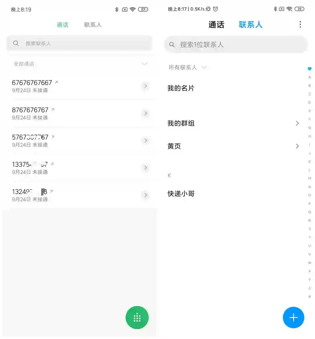 通讯录、短信等界面去掉了多余的线条后,比嚼了绿箭还清爽。