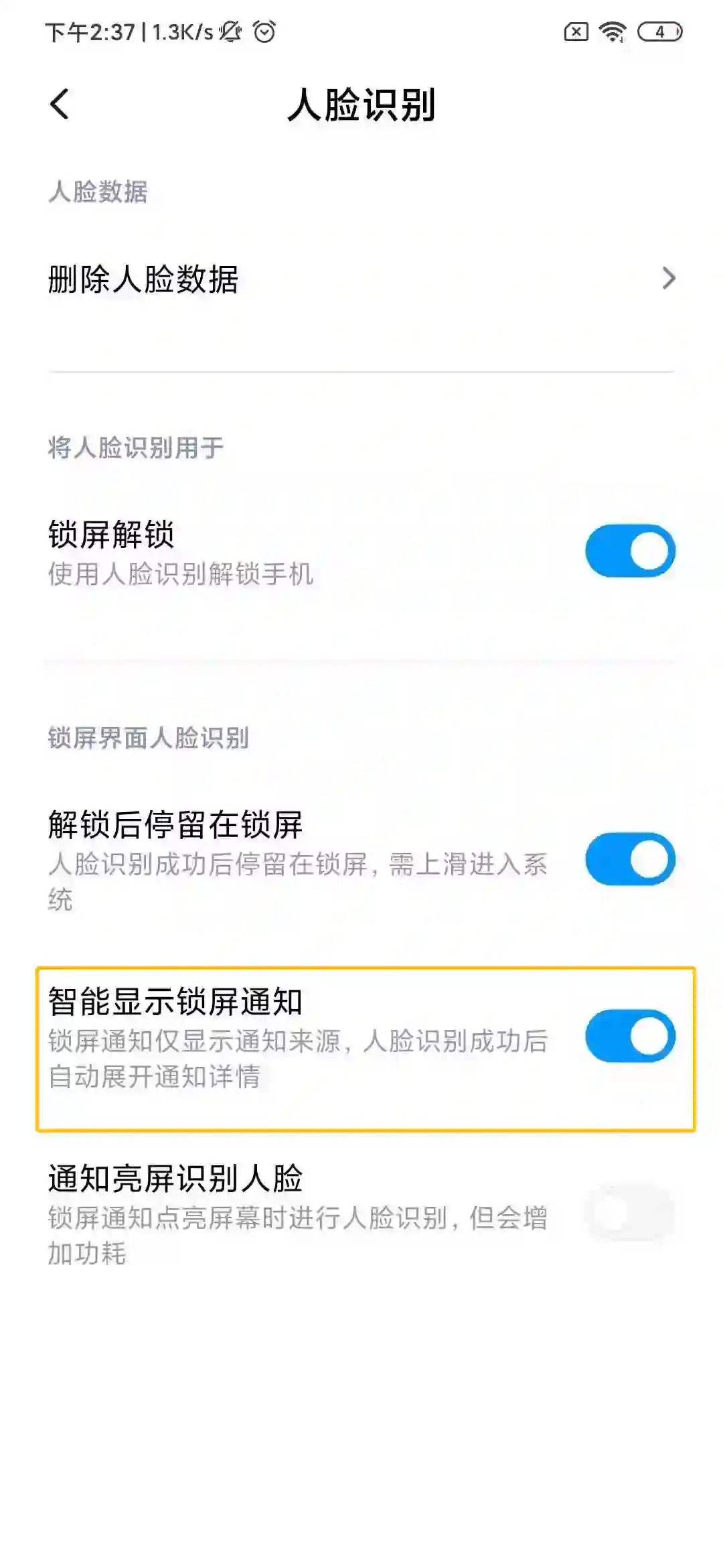 MIUI 11 里新增了一个“智能显示锁屏通知”的功能。啥意思呢?就是只有识别出我本人后,才会显示具体消息。