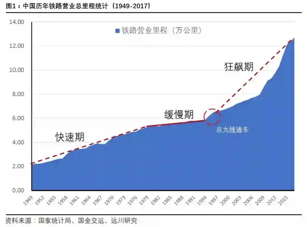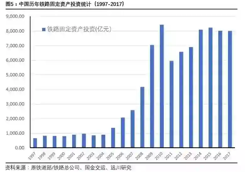在京津高铁开通的5年前,铁路部迎来了新部长。一年之后,振奋整个铁路行业的《中长期铁路网规划》出台,中国铁路“跨越式”发展的“四颗龙珠”开始被逐渐集齐。例如,03年之后铁路建设者们遇到了GDP连续两位数增长的时代,中央政府投资意愿和能力大幅提升,铁路系统在09年四万亿中更是获得巨资支持。