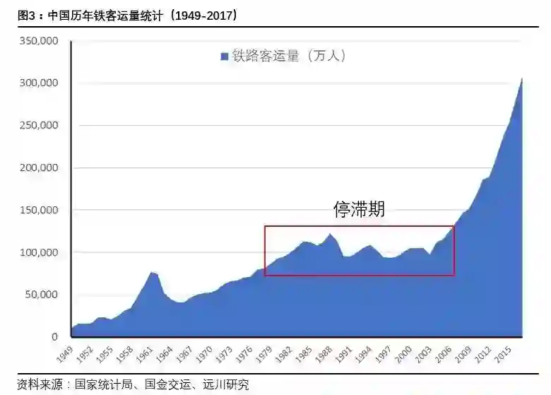高铁后来的故事众所周知,在经历了领导落马动荡、动车重大事故、媒体口诛笔伐之后,现在展现在中国人面前的完全是一副正面的形象。它对中国人出行质量的提升,通过一个简单的数字就可以体现:铁路客运量在维持了20年的10亿人次之后,到2013年突破20亿人次,到2017年突破30亿人次。