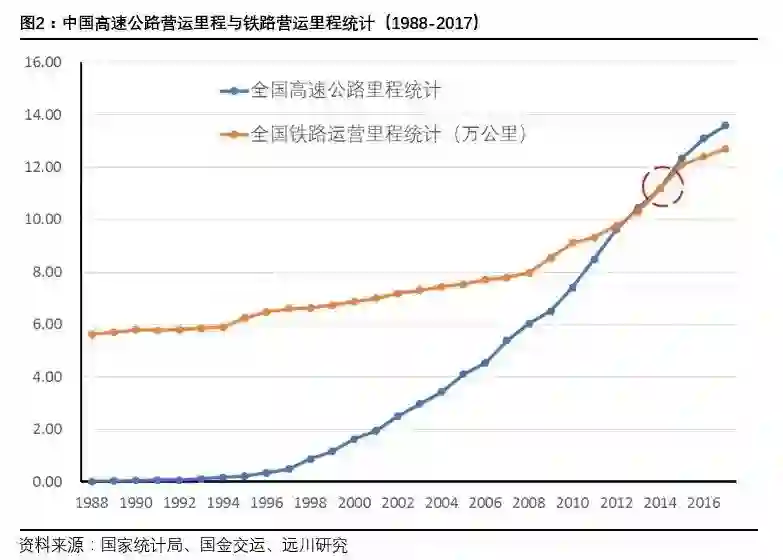 90年代前后,地方政府发现修建收费的高速公路,比向国家要政策要资金修铁路要简单的多,即使一段两公里的公路,两头一堵就能收钱。由于对GDP拉动作用巨大,筹资问题有可以有效解决,高速公路便成为地方政府的宠儿,建设不断加速,营运里程在2012年一举超越铁路。