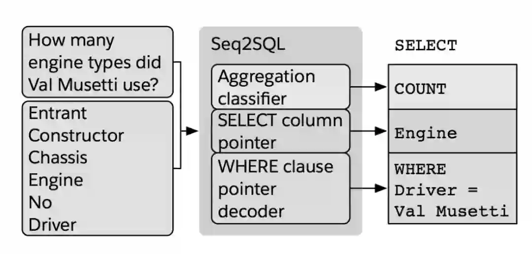 图 9. Seq2SQL [31] 用指针网络来选择问题词和列名称,以创建SQL查询。