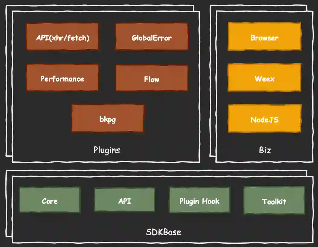SDK底层提供基础的能力,包括上面提到的内核、插件机制的实现、工具类库以及暴露给用户的基础API。