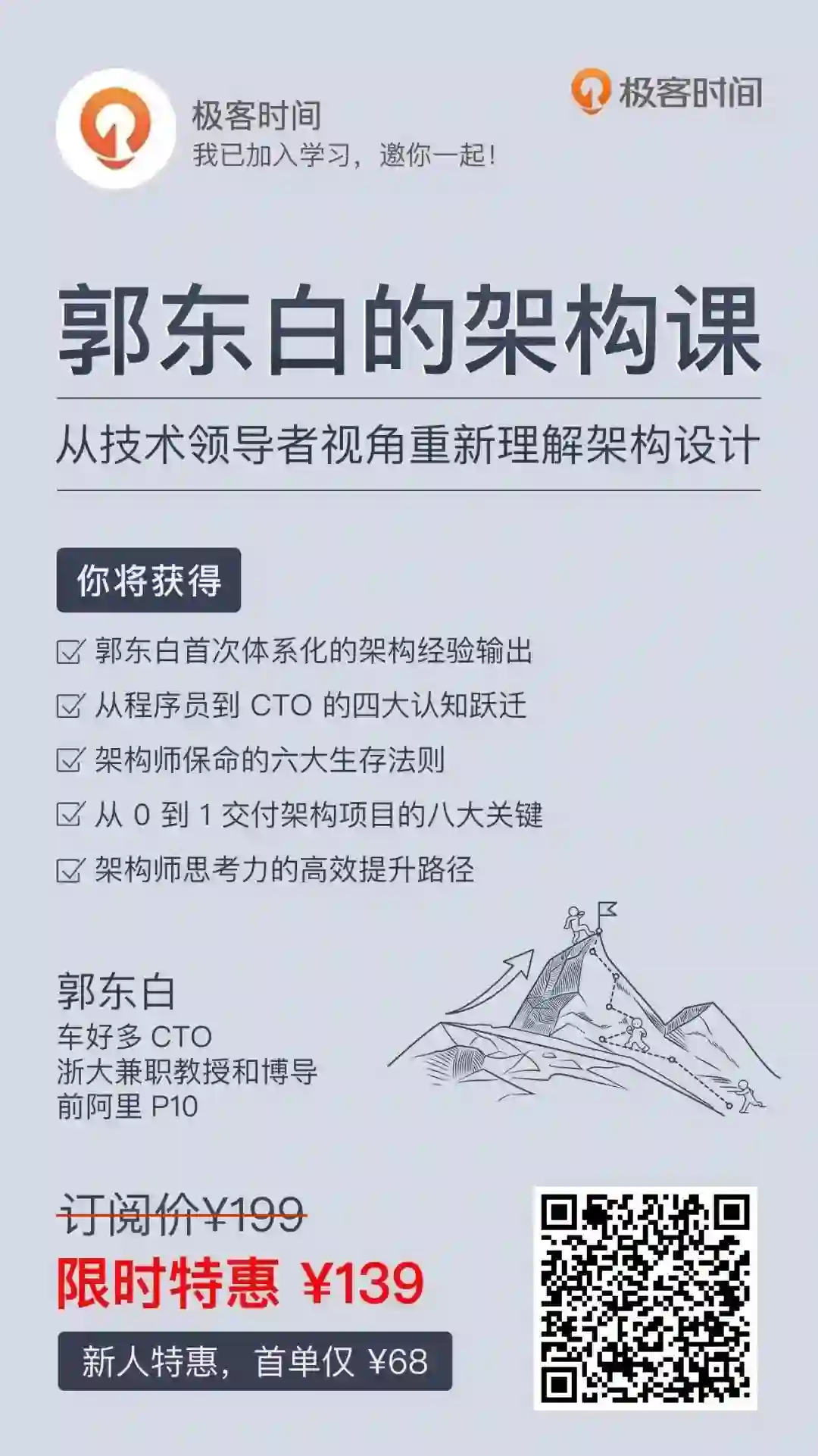 现在极客时间老用户入手 ¥139,新用户仅 ¥68