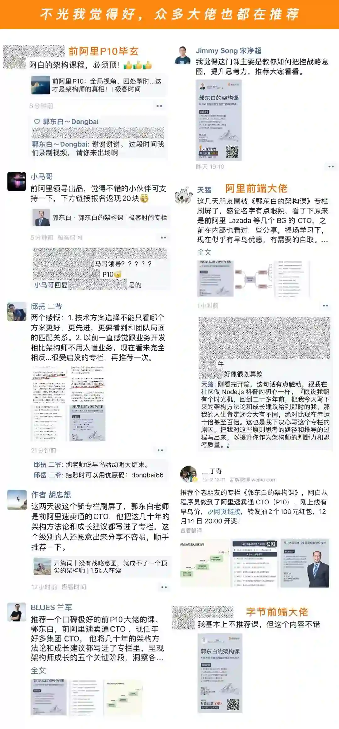 P10 大牛郭东白二十多年的架构经验,订阅了就可以无限回看,而且还能随时在文章下面留言提问,直接与阿白交流,非常值得一看。
