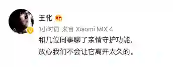 不过就在今晚 18 点,小米关部总经理王化给大家带来一些好消息,他表示“不会让亲情守护功能离开太久”,暗示有望在停服后一段时间内回归。