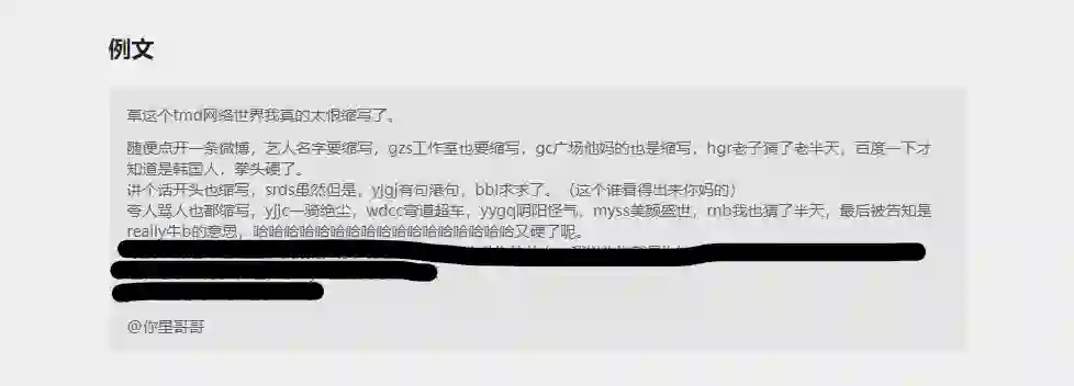 时下各类年轻化圈层内流行缩写语言,对「老年人」不是很友好。 为了勉强理解这类「新兴语言」,项目作者发布了一款对缩写划词翻译的工具,谨献给那些对「新兴语言」无可奈何却又无法逃避的「老年人们」。