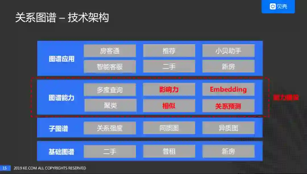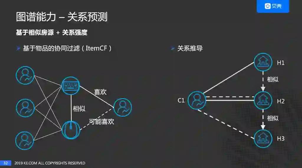 在能力层可以做相似,如相似房,相似用户;同时,可以做关系预测,一个是基于相似+关系强度,一个是基于异质网络。