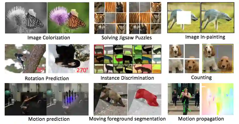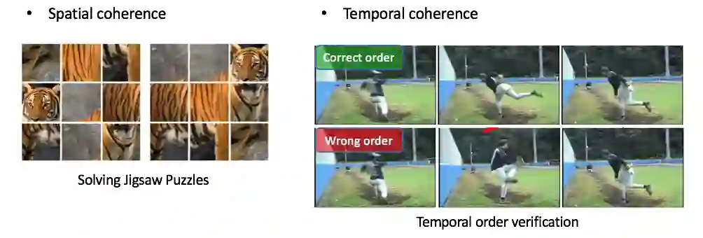图片具有空间连贯性,视频具有时空连贯性。那么就可以利用这些特点来设计自监督任务。如下图: