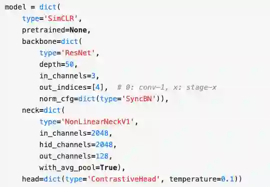 OpenSelfSup用config文件来定义各种参数和模块,方便参数调节和模块修改。采用高度模块化的设计,使得开发自己的自监督学习算法变得非常方便。