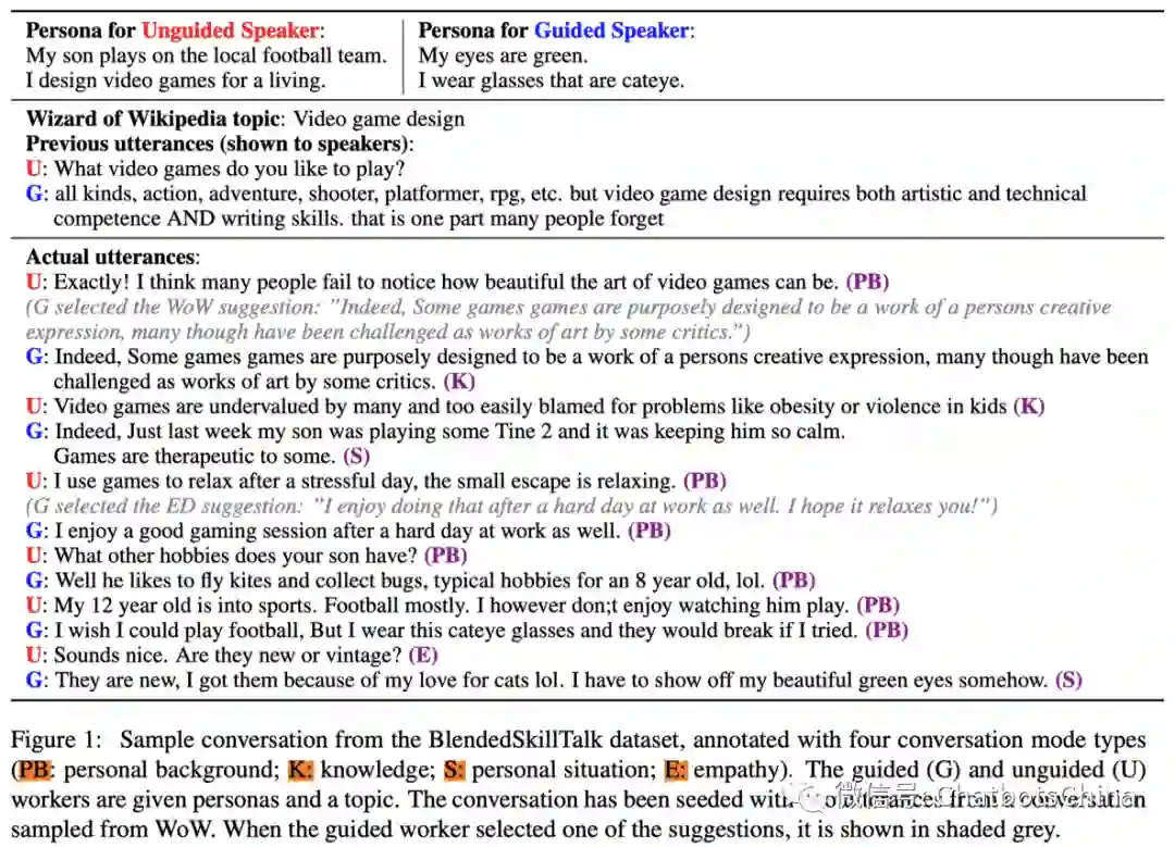 Blended Skill Talk (BST):基于ConvAI2、ED和WoW构建,并融合它们各自的优势。