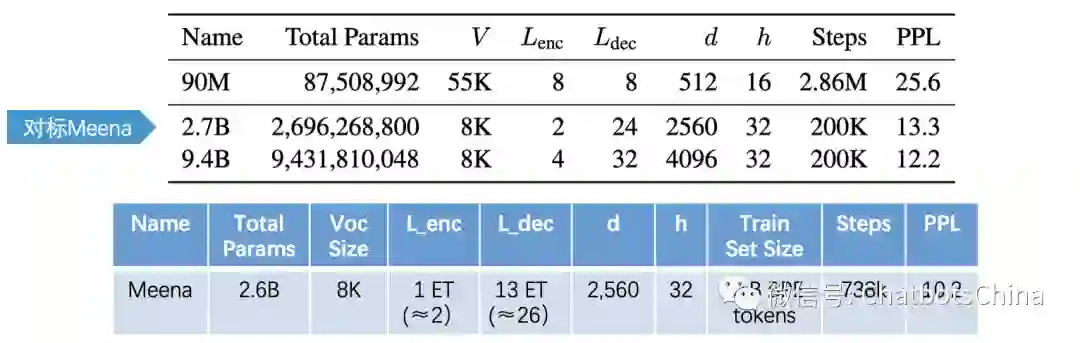 中间2.7B那个模型基本和Meena的大模型是对应的,参数量,模型层数都差不多。