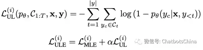 Seq2seq模型标准的训练方法就是MLE,作者也尝试了他们之前在论文 “Neural Text Generation with Unlikelihood Training” 中提出的另一种损失,叫 Unlikelihood Loss (UL),即在提高正确token概率的同时,降低其他token的概率。