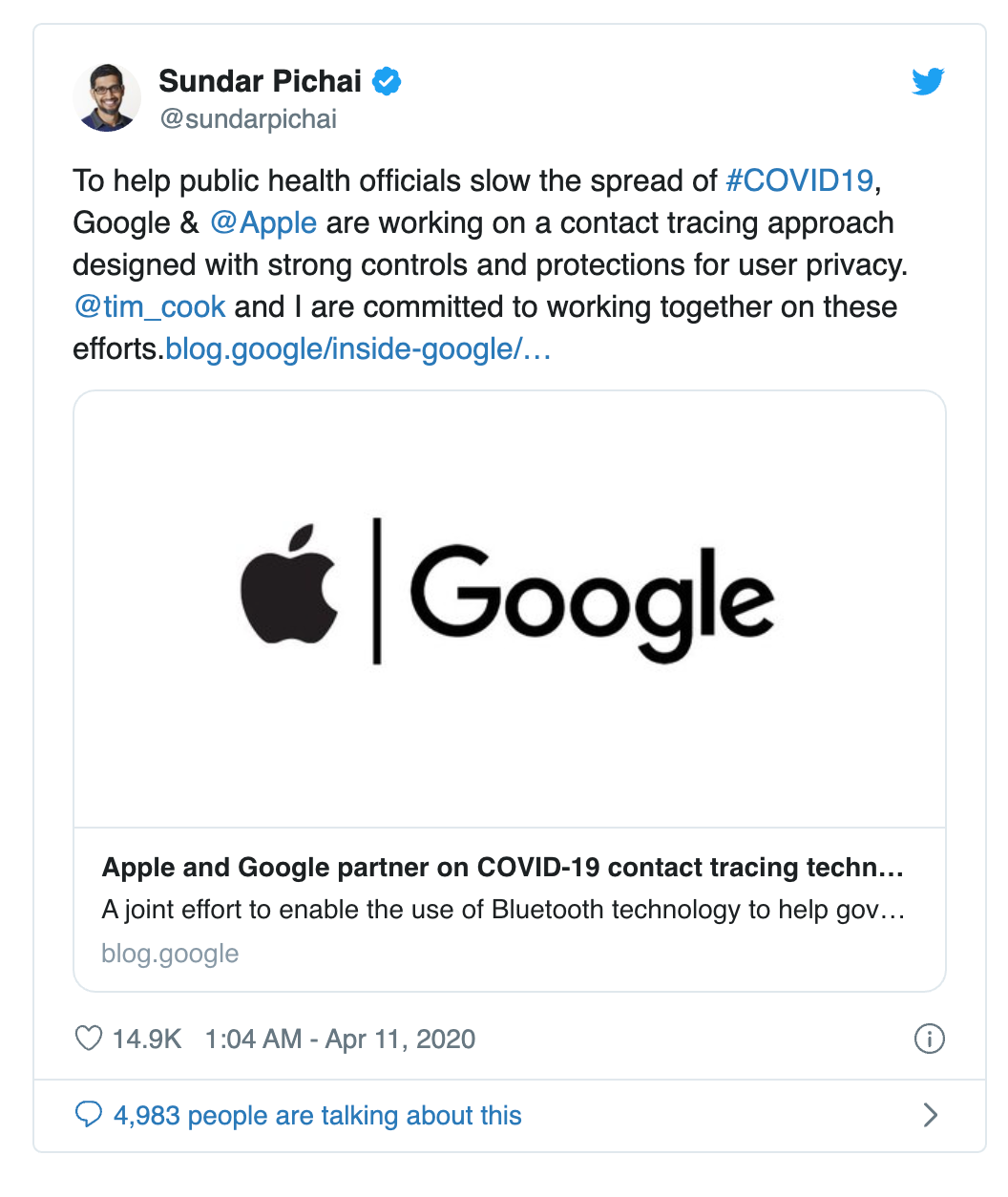 苹果和谷歌将在5月中旬推出一对iOS和Android API,并确保卫生当局的应用程序可以使用。