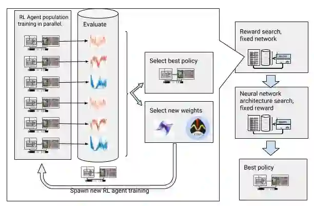 为了克服这些挑战,我们自动化深度强化学习(RL)培训。AutoRL是一个围绕深度RL的演化自动化层,它使用大规模超参数优化来搜索奖励和神经网络架构。它分两个阶段,奖励搜索和神经网络架构搜索。在奖励搜索期间,AutoRL会在几代人的同时训练一群DDPG代理人,每个人都有一个稍微不同的奖励函数,优化当地规划者的真正目标:到达目的地。在奖励搜索阶段结束时,我们会选择最能引导代理人到达目的地的奖励。在神经网络架构搜索阶段,我们重复这个过程,这次使用选定的奖励并调整网络层,优化累积奖励。